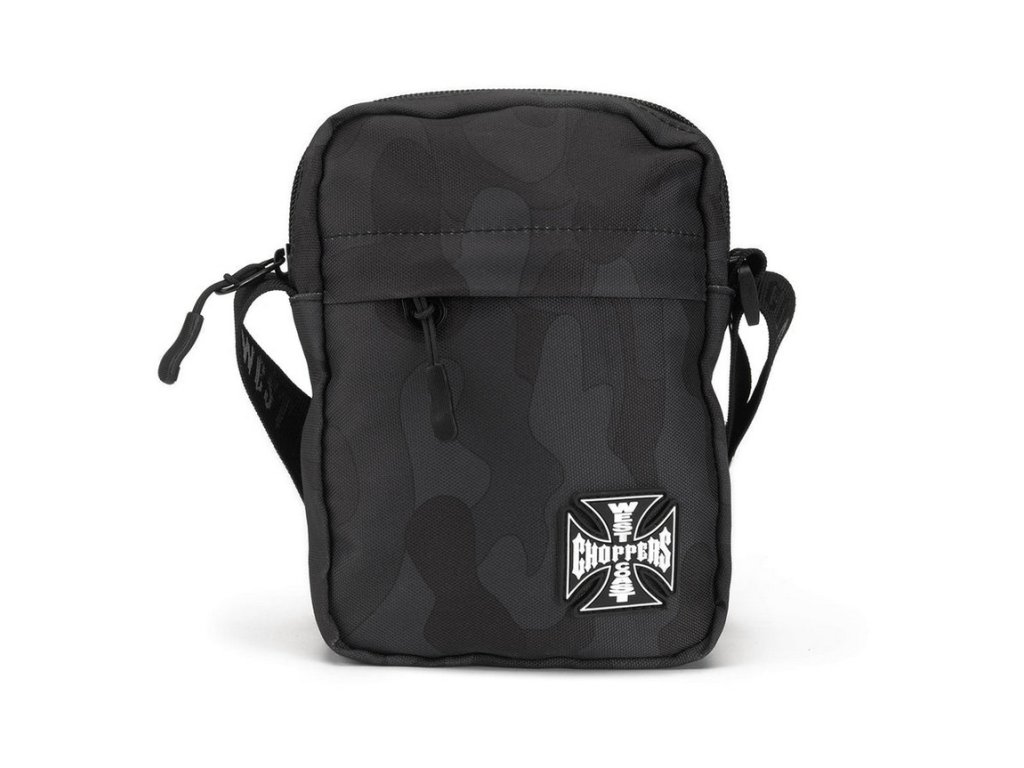 Crossbody taška West Coast Choppers s logem a černo-šedým camo vzorem.