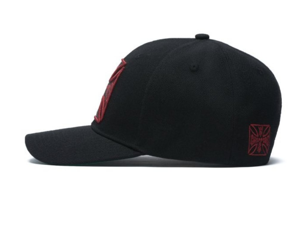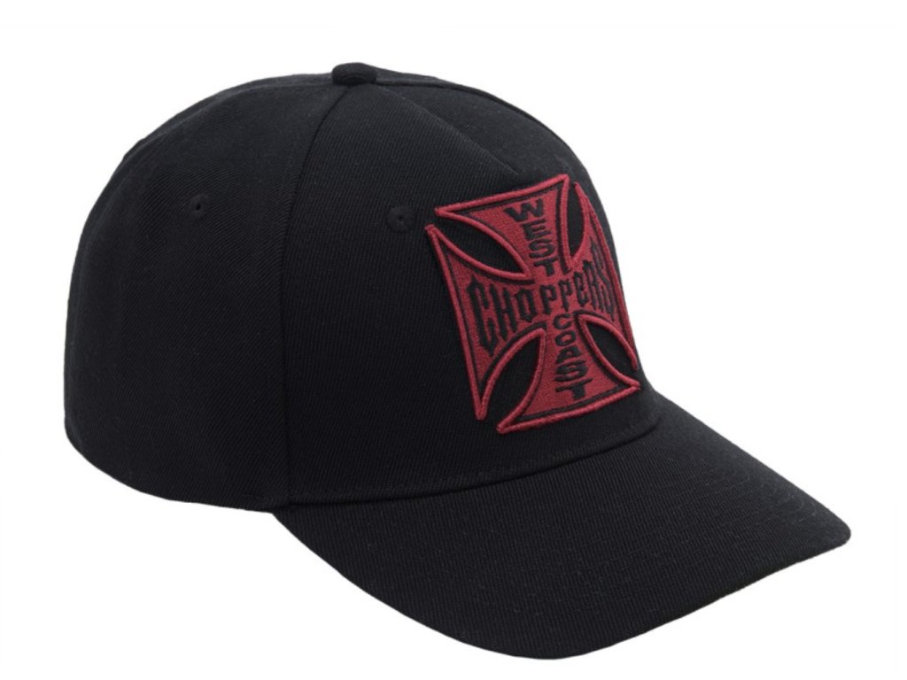 Černá West Coast Choppers kšiltovka s tmavě červeným vyšitým 3D logem.