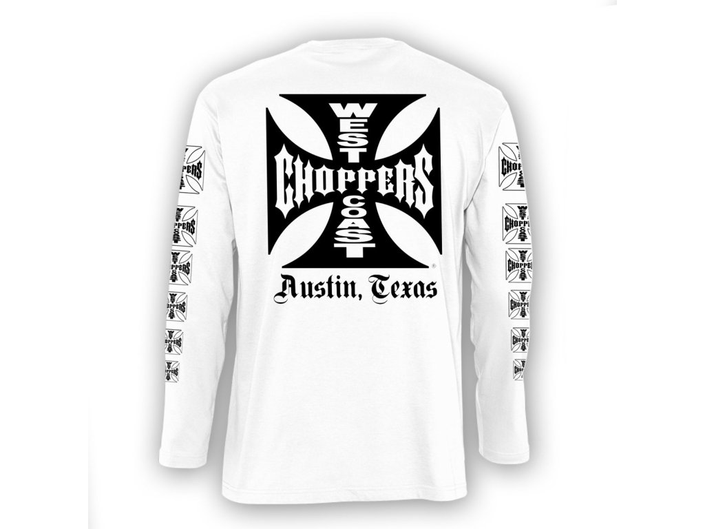 Bílé pánské triko West Coast Choppers s dlouhým rukávem a s nápisem Austin, Texas na zadní straně.