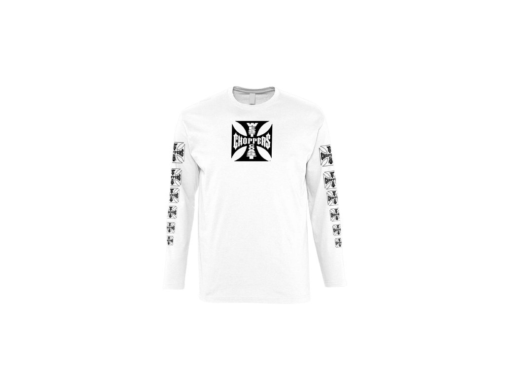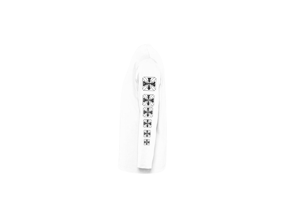 Bílé pánské triko West Coast Choppers s dlouhým rukávem. Triko je vyrobeno z nejjemnější dostupné bavlny, má potisk OG kříže na přední i zadní straně a na rukávech.