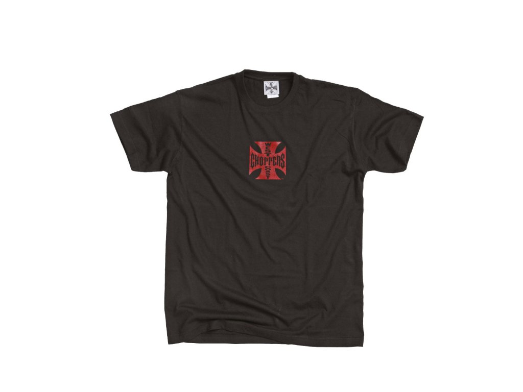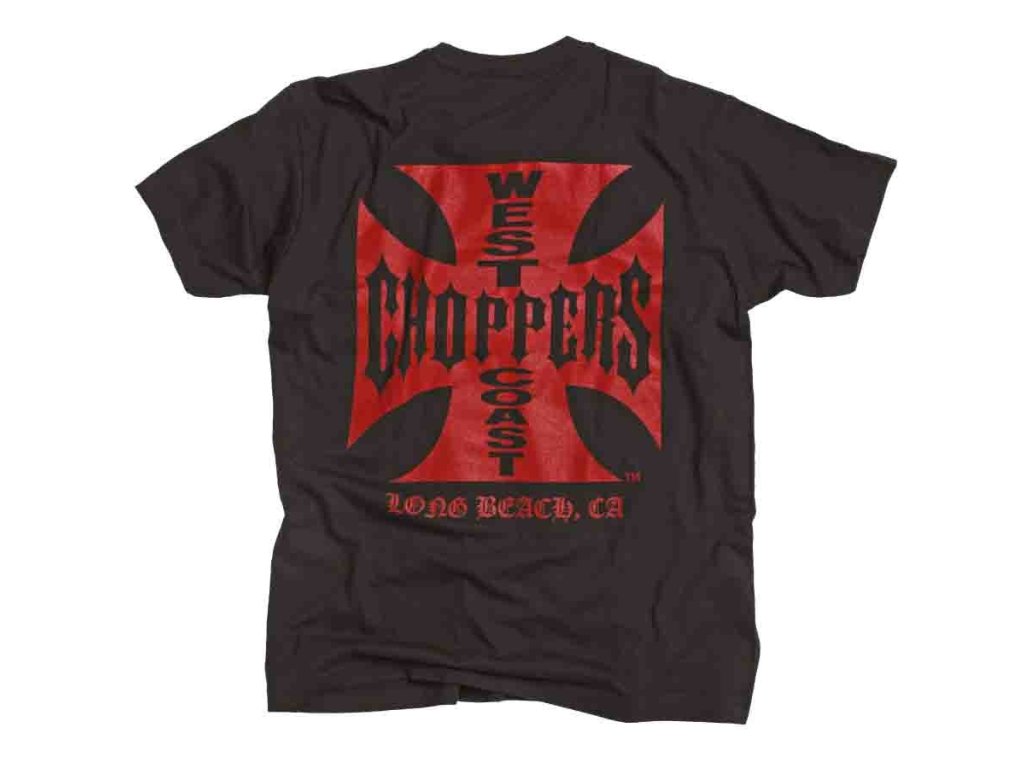 Černé pánské triko West Coast Choppers s krátkým rukávem. Toto triko má na přední i zadní straně červené logo OG kříž.