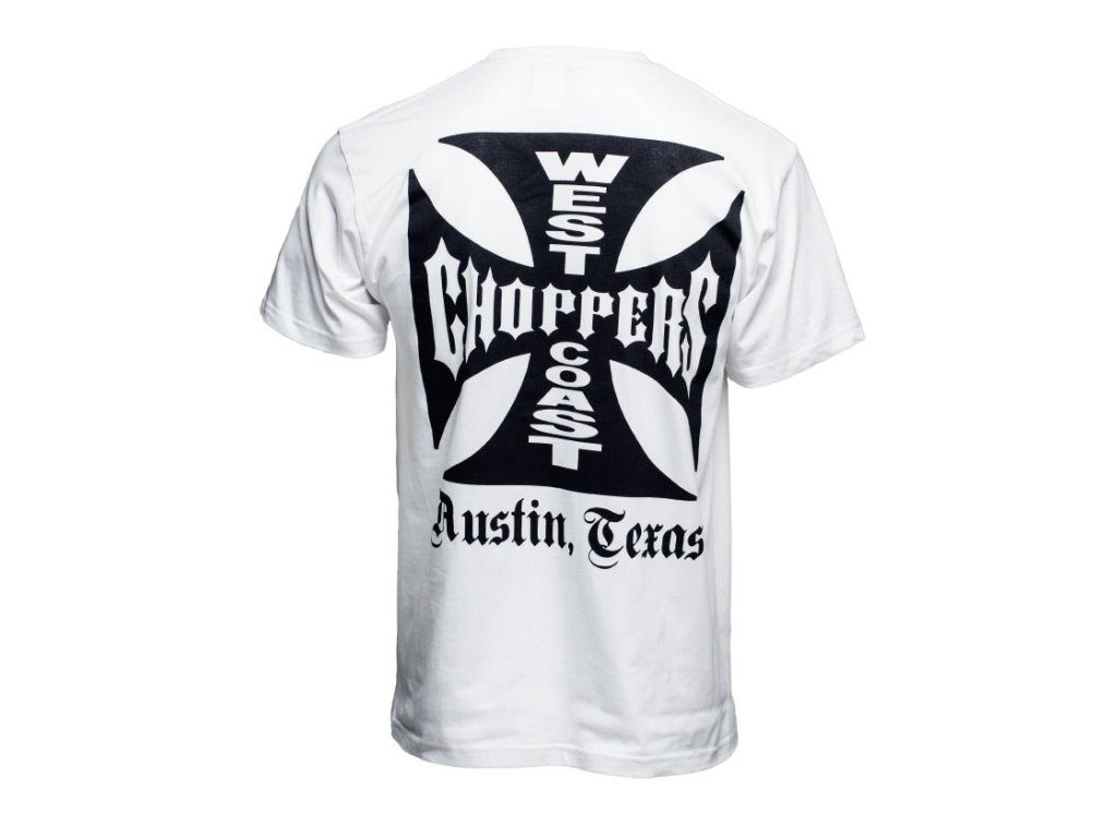 Bílé pánské triko West Coast Choppers s krátkým rukávem a s nápisem Austin, Texas na zadní straně.