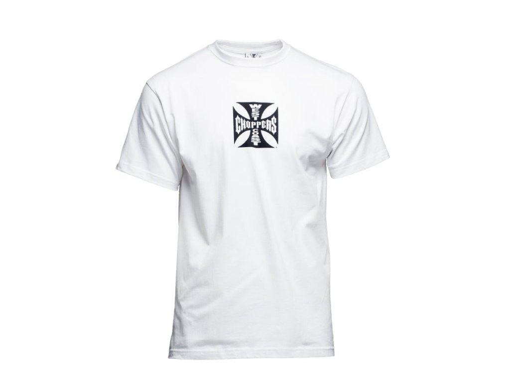 Bílé pánské triko West Coast Choppers s krátkým rukávem. Toto triko má na přední i zadní straně logo OG kříž.