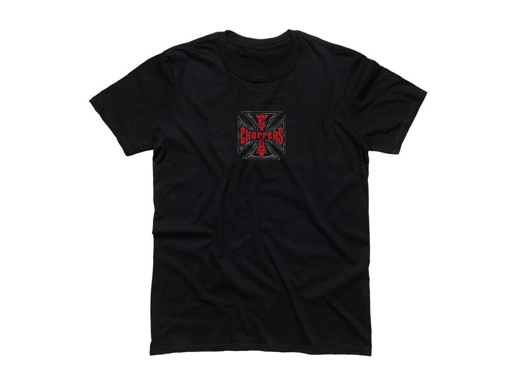 Černé pánské triko West Coast Choppers s krátkým rukávem. Toto triko má na přední i zadní straně natisklé logo OG kříž.