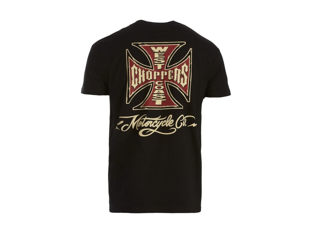Černé pánské triko West Coast Choppers s krátkým rukávem. Toto triko má na přední i zadní straně natisklé logo OG kříž.