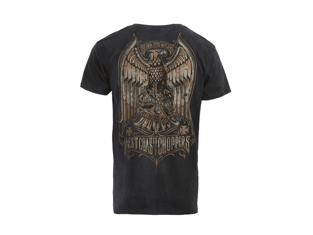 Tmavě modré pánské triko West Coast Choppers s krátkým rukávem. Triko má na přední straně potisk OG kříž a přes celou zadní stranu je orlice.
