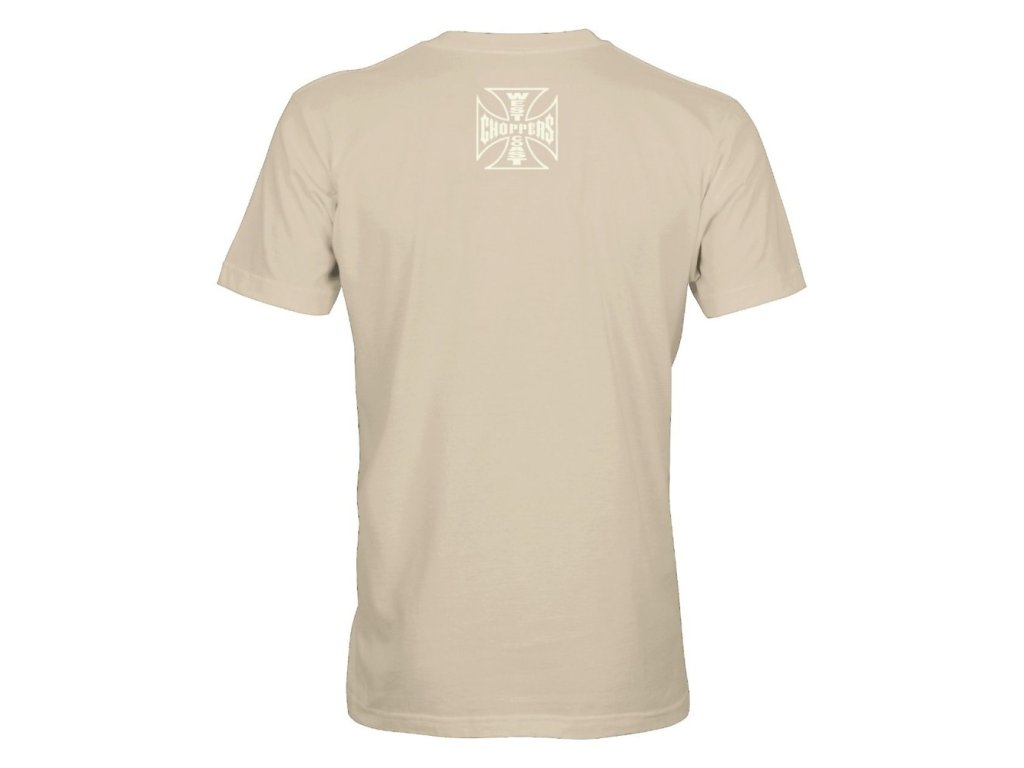 Béžové pánské triko West Coast Choppers s krátkým rukávem. Toto triko má na přední straně nápis a na zadní straně pouze menší logo.