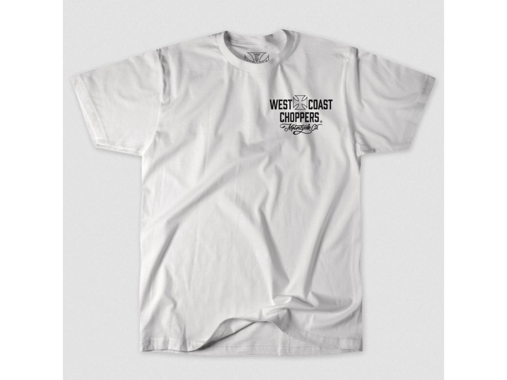 Bílé pánské triko West Coast Choppers s krátkým rukávem. Toto triko má na přední i zadní straně logo.