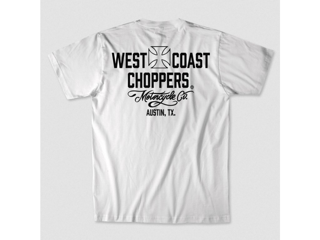 Bílé pánské triko West Coast Choppers s krátkým rukávem a s nápisem Austin, Texas na zadní straně.