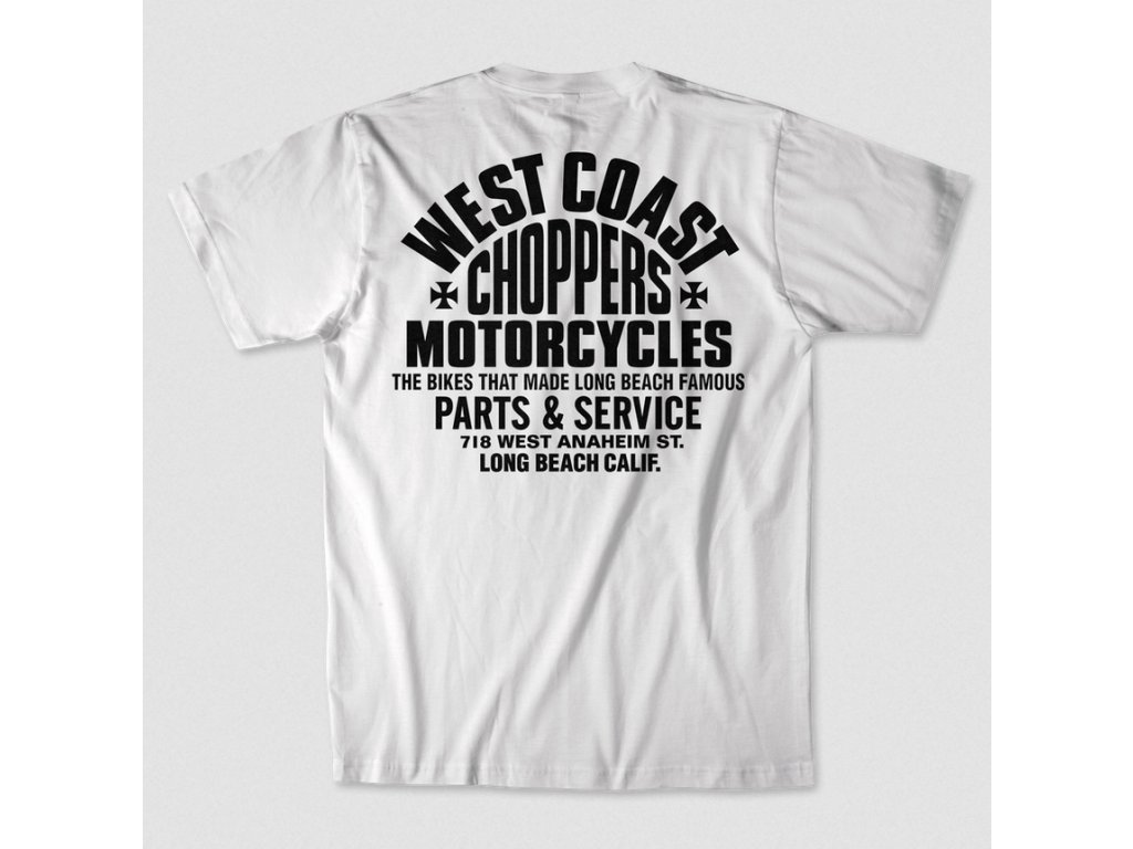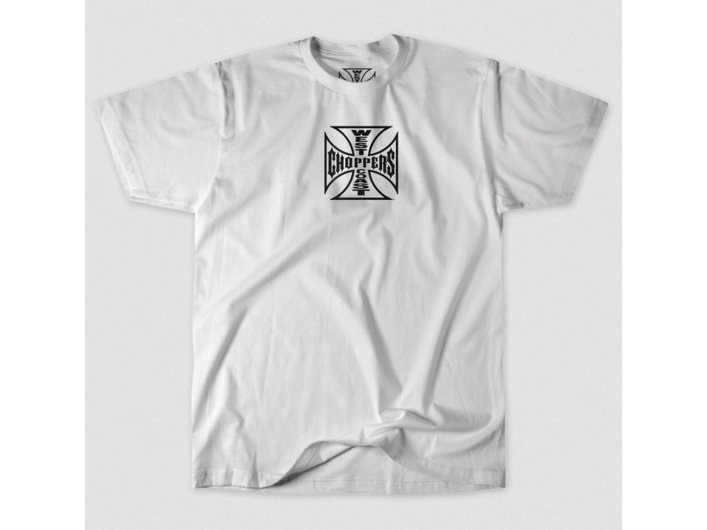 Bílé pánské triko West Coast Choppers s krátkým rukávem. Toto triko má na přední logo a na zadní nápis.