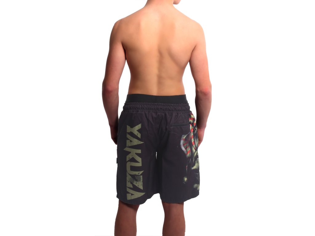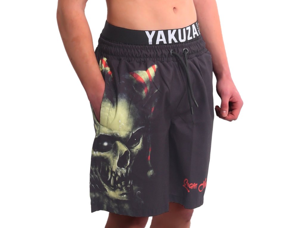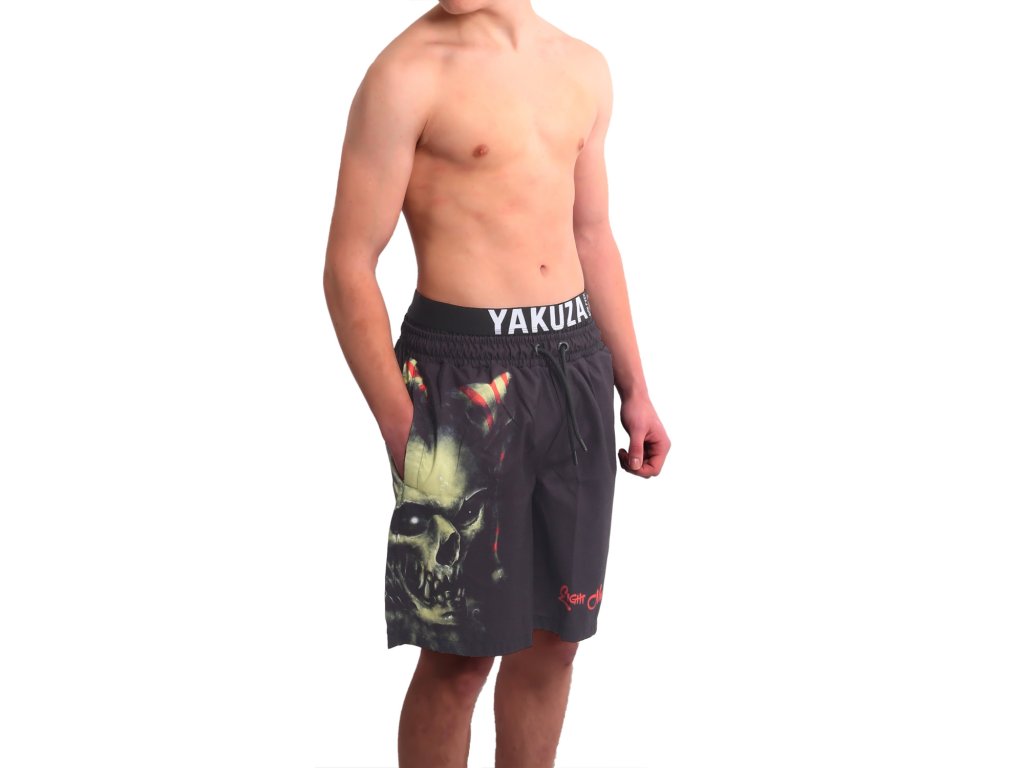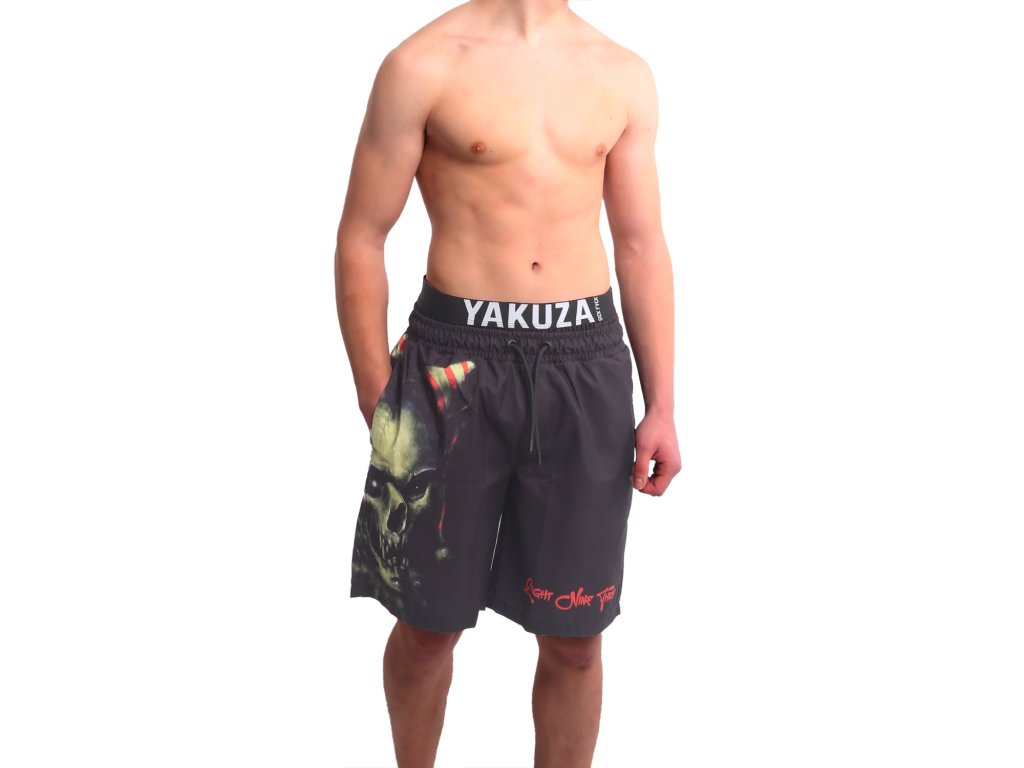 Pánské kraťase Yakuza Dead Clown 22045. Černé kraťase s potiskem, širokou gumou s logem v pase a samozřejmostí je také štítek s logem Yakuza na bočním švu. Materiál je vhodný i na koupání.