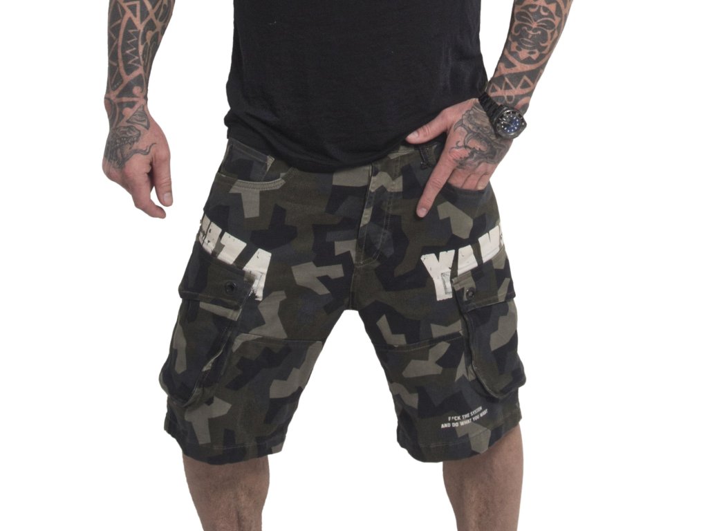 Pánské cargo kraťase Yakuza Bump 23001. Camouflage kraťase s bočníma kapsama a logem YAKUZA.