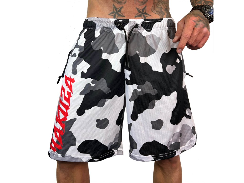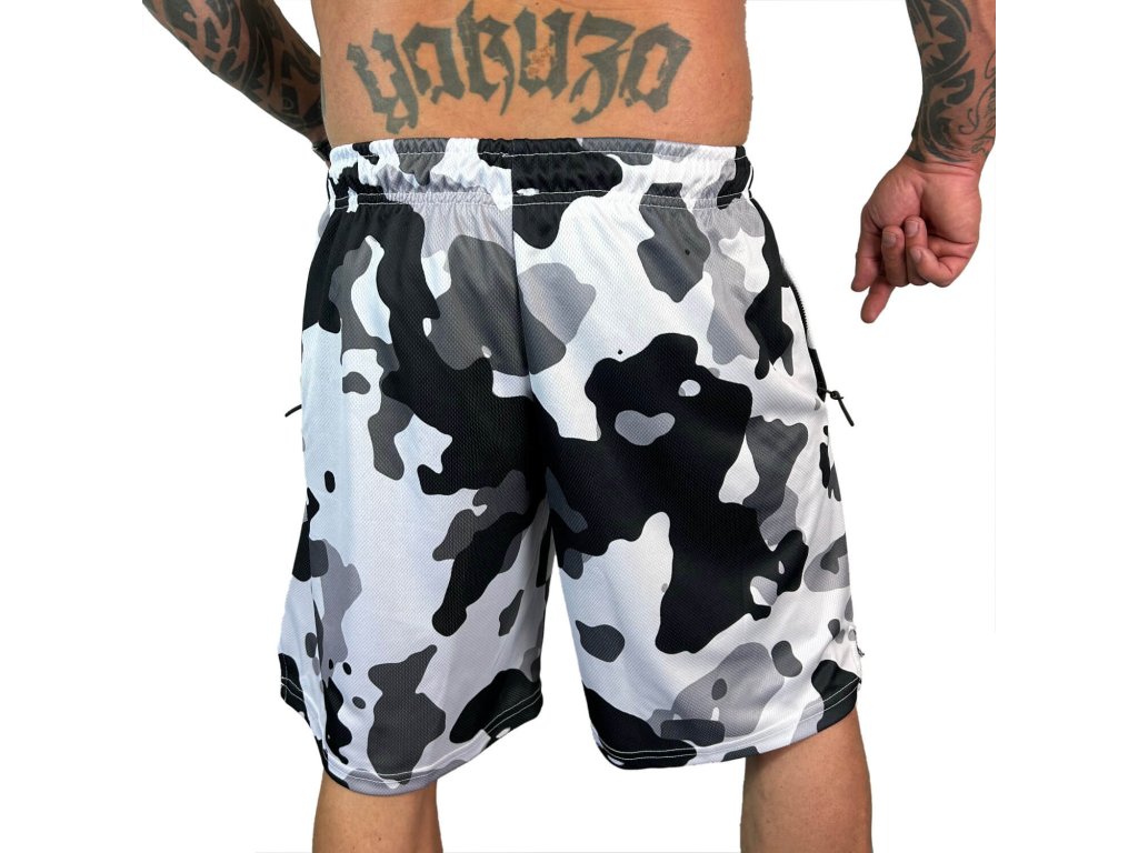 Pánské kraťasy Yakuza Fighter 24018. Camouflage kraťasy s potiskem Loga, širokou gumou s logem v pase a samozřejmostí je také štítek s logem Yakuza na bočním švu. Materiál je vhodný i na koupání.