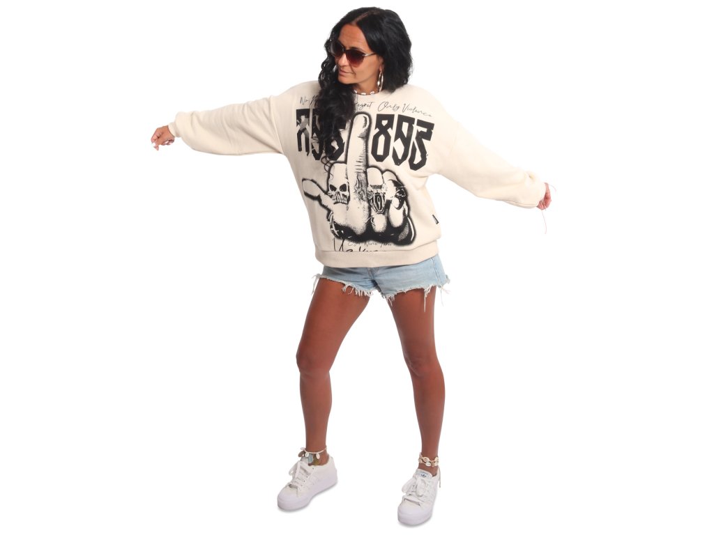 Dámská mikina Yakuza Shot Urban 22143 ve volném střihu. Mikina má béžovou barvu a čermný potisk. Střih je volný, pohodlný s žebrovaným lemem a manžetami.