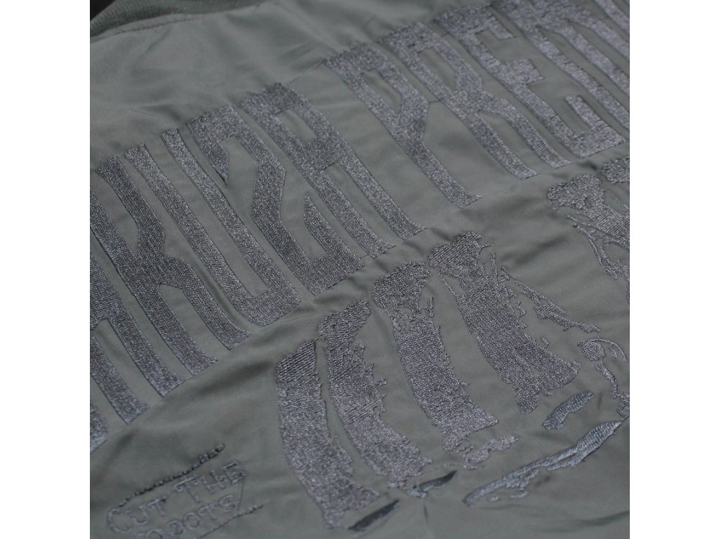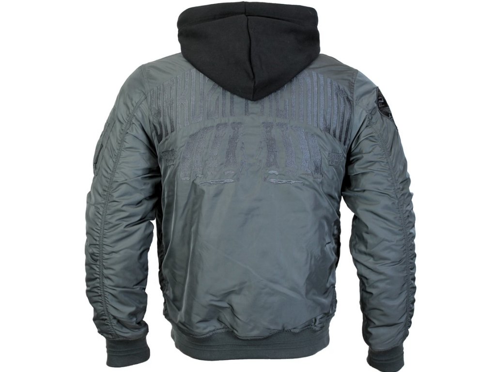 Jarní/podzimní bunda 3961 v tmavě šedé barvě od Yakuza Premium. Lehce hřejivý, ale také zatraceně stylový bomber. Bunda má široké manžety, velký potisk na zádech a boční kapsy na zapínání. Top-strop je odepínací vložka s kapucí. Bunda je střižena spíše těsněji, objednejte o číslo větší, než které nosíte normálně.