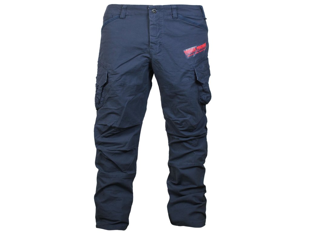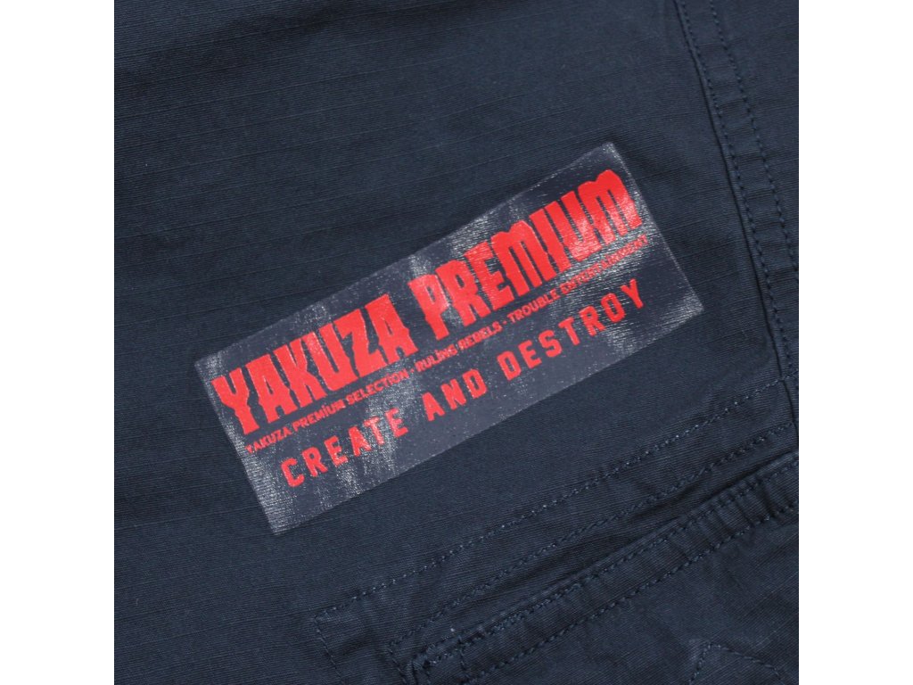 Dlouhé kalhoty Yakuza Premium 3452 v tmavě modré barvě s kapsami a s výšivkou Yakuza Premium.