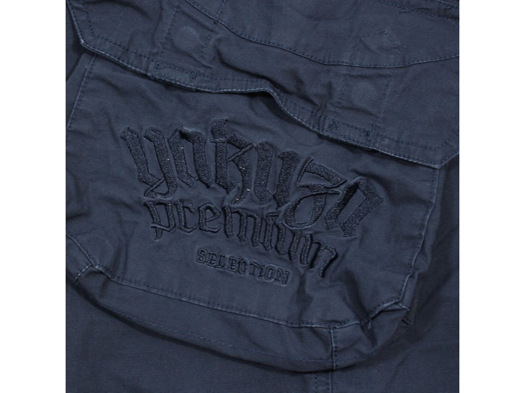 Dlouhé cargo kalhoty 3452 v tmavě modré barvě od Yakuza Premium Selection. Tyto džíny mají dvě kapsy na stehnech, pravá je vyšitá nápisem Yakuza Premium a také dvě klasické kapsy. Samozřejmostí jsou i dvě bederní kapsy na zadní straně, z nichž každá je uzavíratelná na patentku. Zvláštností těchto cargo kalhot je ležérní rovný střih. Rozměry v příkladu XL jsou cca 48cm v pase, měřeno vleže a z vnější strany má délku cca 107cm.