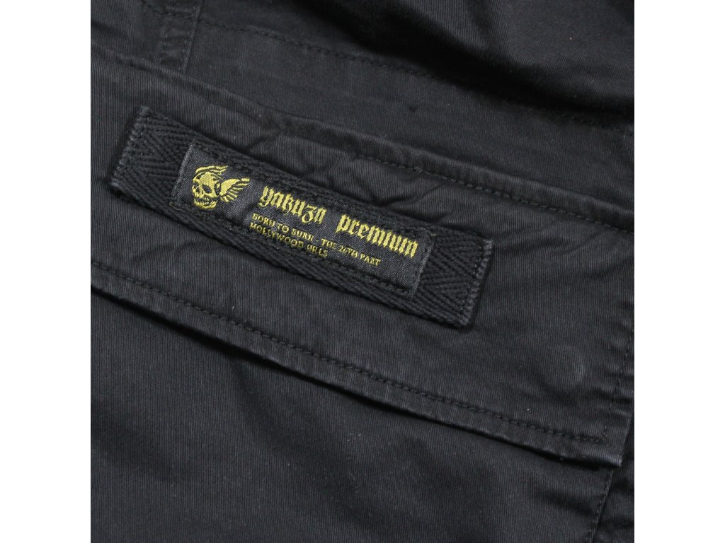 Dlouhé kalhoty Yakuza Premium 3751 s kapsami v černé barvě z kolekce podzim/zima 2024. Tyto džíny mají dvě kapsy na stehnech a také dvě klasické kapsy (levá je s výšivkou) . Nohavice je zúžená s širším kotníkovým lemem .
