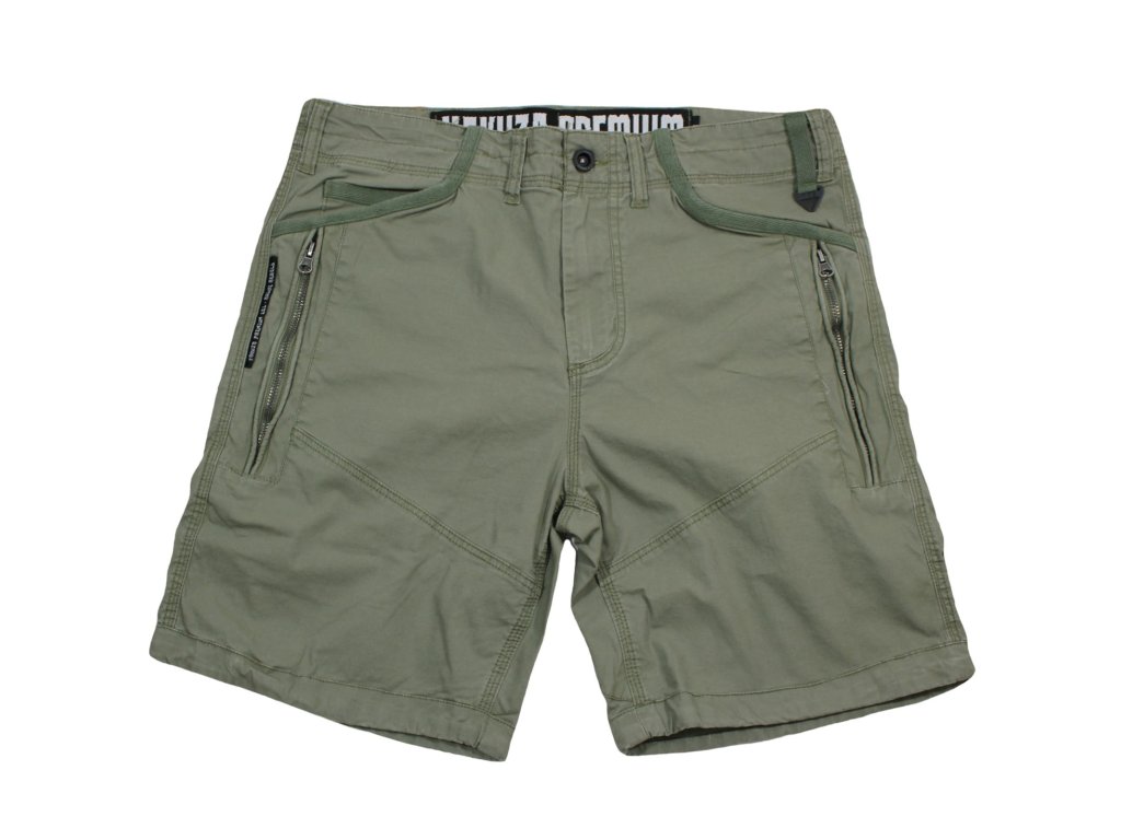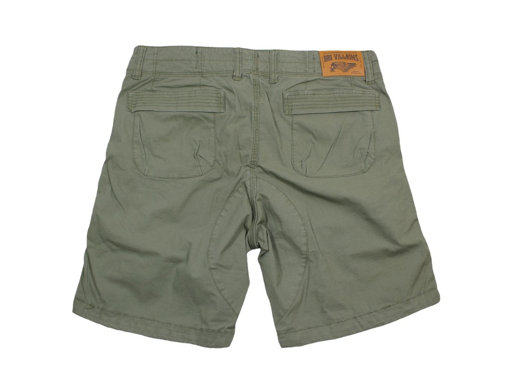 Kraťasy 3451 v olivové barvě od Yakuza Premium Selection. Na zadní straně jsou dvě uzavíratelné kapsy a samozřejmostí jsou také klasické boční kapsy. Letní střih nad kolena a skvělá kvalita látky. Míra uvedená na příkladu velikosti L je cca 44 cm měřeno vleže na horní manžetě a cca 55 cm na boku (délka nohavic).