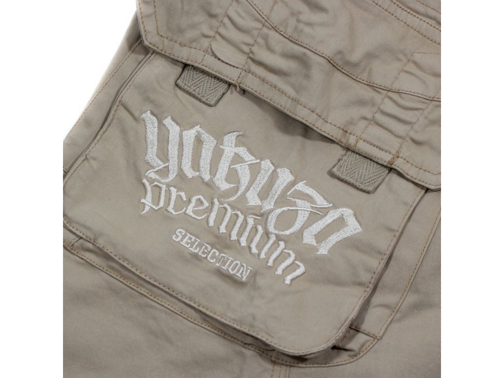 Kraťasy 3454 v béžové barvě od Yakuza Premium Selection. Kraťasy mají výšivku Yakuza Premium na pravé boční kapse.