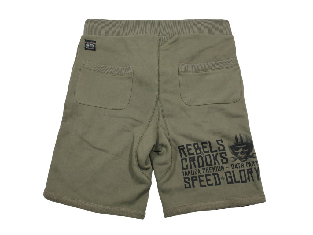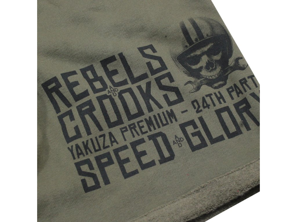 Kraťasy 3628 v olivové barvě od Yakuza Premium. Kraťasy mají vepředu na pravé nohavici výšivku. Stahovací šňůrka v horní manžetě a dvě boční kapsy plus zadní kapsa na levé straně. Kraťasy jsou vhodné nejen na sportovní aktivity, ale i na volný čas. Kraťasy jsou volného a pytlovitého střihu, a proto jsou extrémně pohodlné na nošení. Provokativní motivy a skvělá kvalita látek.