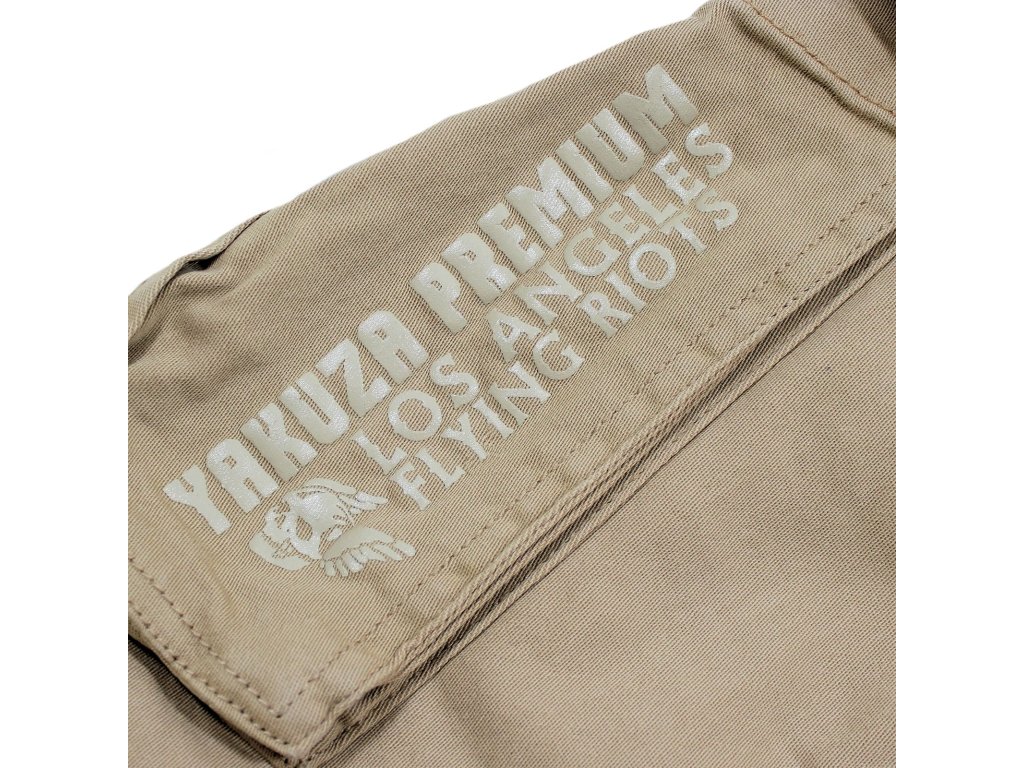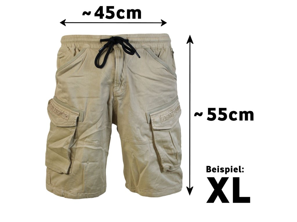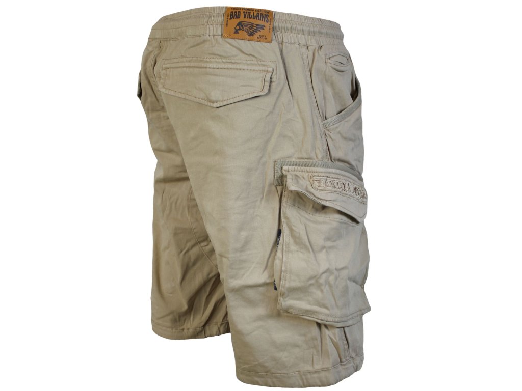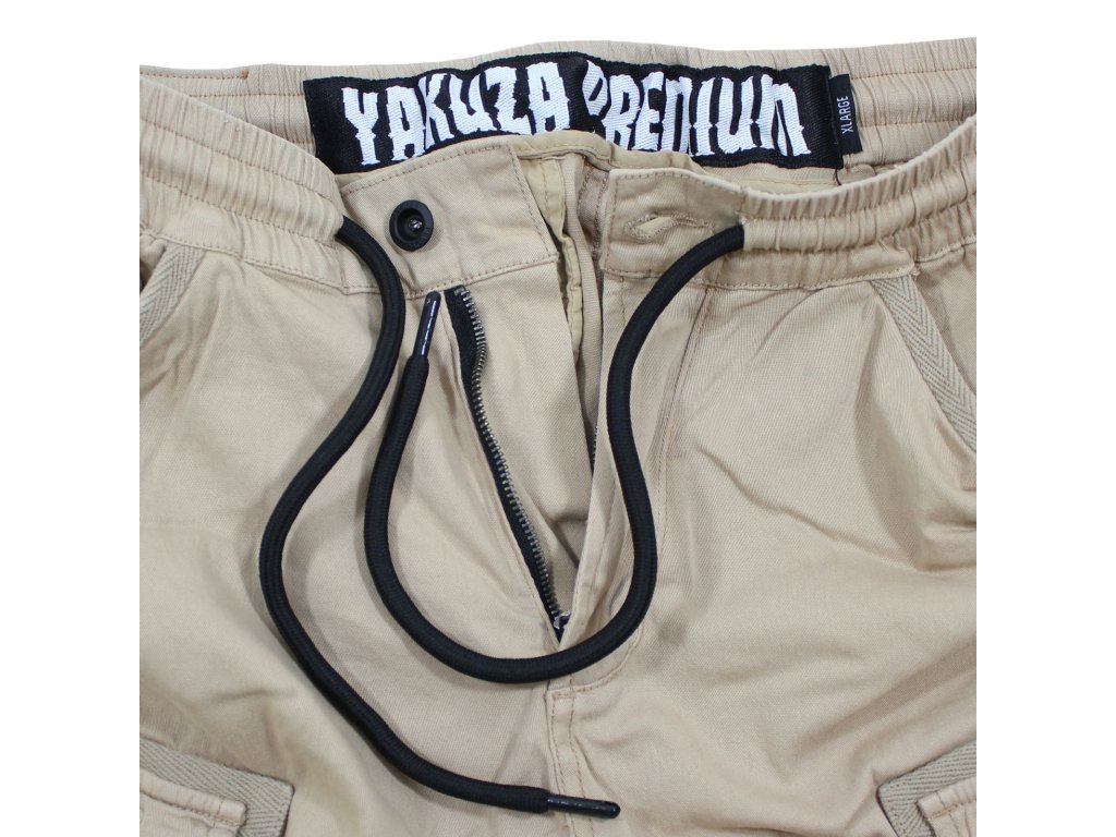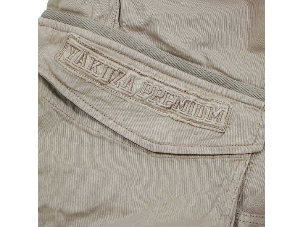 Kraťasy 3653 v béžové barvě od Yakuza Premium Selection. Kraťasy mají výšivku Yakuza Premium přes obě stehenní kapsy. Pohodlná guma se širokou manžetou v pase. Letní střih nad kolena a skvělá kvalita látky. Míra uvedená na příkladu velikosti XL je cca 45 cm měřeno vleže na horní manžetě a cca 55 cm na boku (délka nohavic).