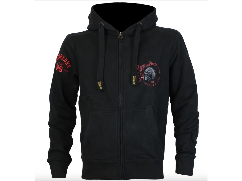 Pánská mikina 3825A v černé barvě od Yakuza Premium Selection z kolekce jaro/léto 2025. Na zadní straně má velký potisk. Mikina má zip, vpředu dvě boční kapsy a na kapuci stahovací šňůrku. Rozměry v příkladu velikosti XL jsou cca 50 / 55 / 68 a 60 cm měřeno vleže pas / hrudník / záda a paže. Vzhledem k tomu, že tato mikina má velmi padnoucí střih, v případě pochyb objednejte o číslo větší.