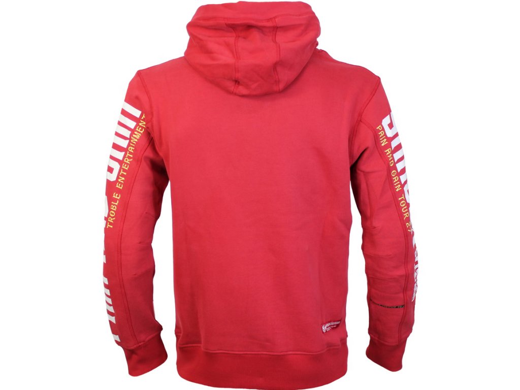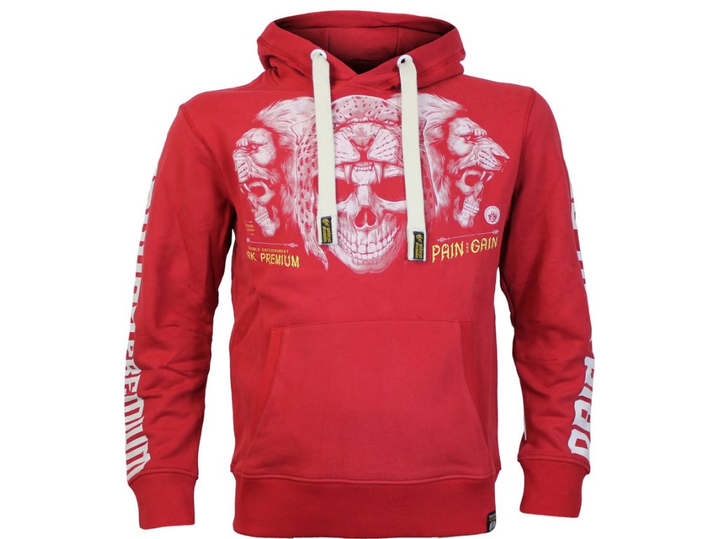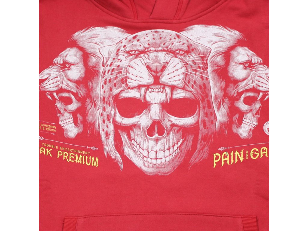 Pánská mikina 3923 v červené barvě od Yakuza Premium Selection z kolekce podzim/zima 2025. Na předníí straně má velký potisk. Mikina je přetahovací přes hlavu, má jednu velkou klokanní kapsu a na kapuci stahovací šňůrku. Rozměry v příkladu velikosti XL jsou cca 50 / 55 / 68 a 60 cm měřeno vleže pas / hrudník / záda a paže. Vzhledem k tomu, že tato mikina má velmi padnoucí střih, v případě pochyb objednejte o číslo větší.