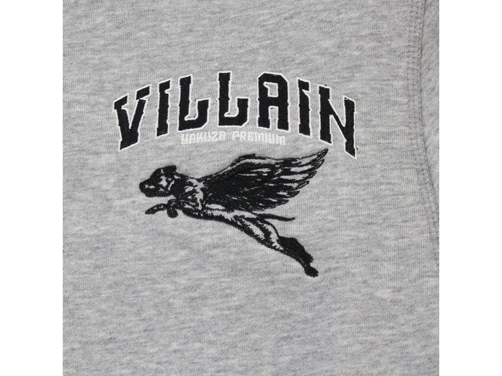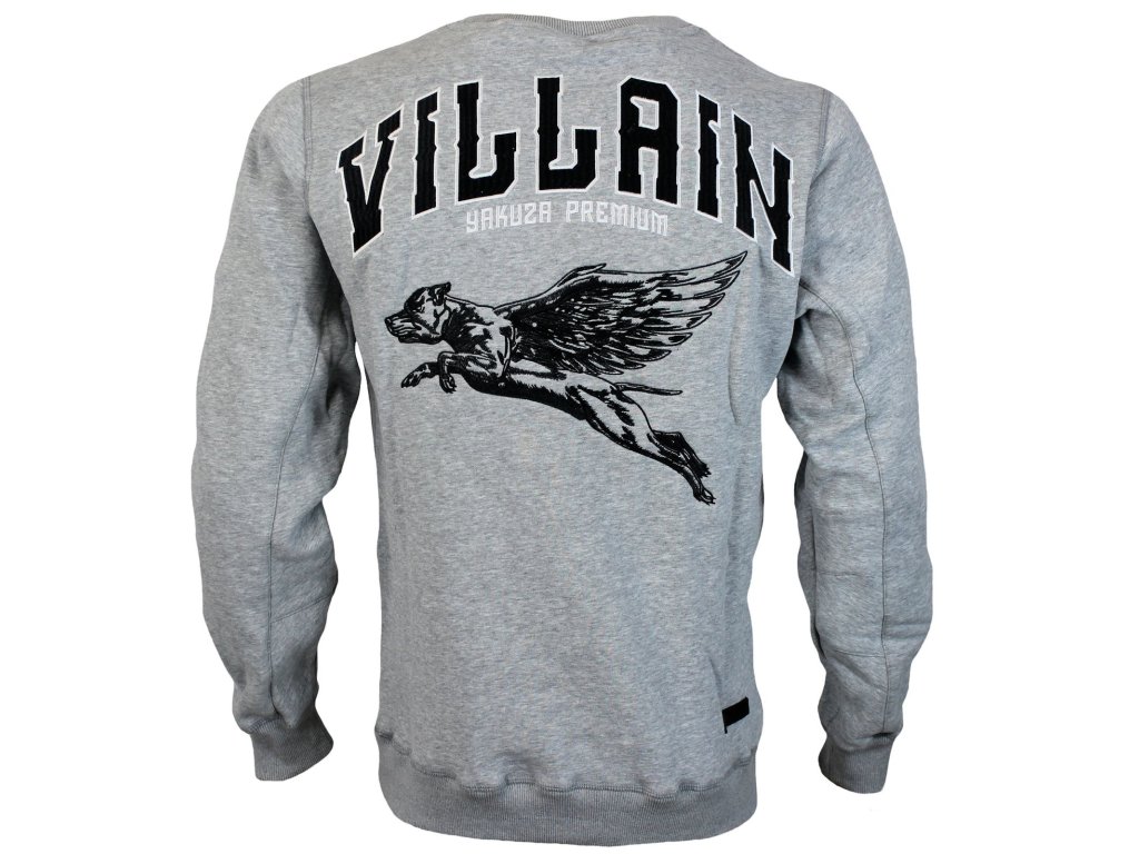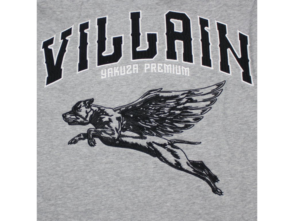 Pánská mikina Yakuza Premium 3522 v šedé barvě a s černou výšivkou pitbulla s křídly. Padnoucí střih, zúžené lemy a měkká bavlna zajistí dokonalé pohodlí.