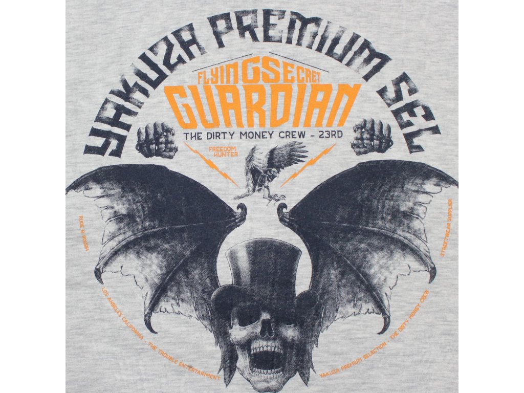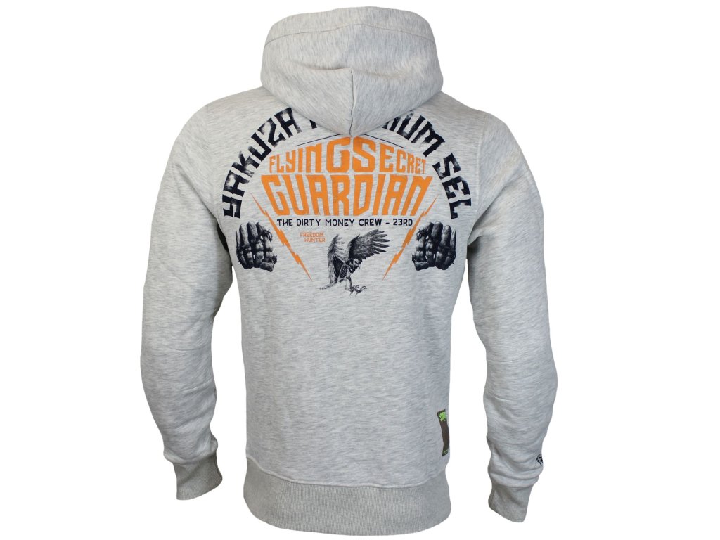 Pánská mikina 3524 ve světle šedé barvě od Yakuza Premium Selection z kolkece podzim/zima 2023. Na přední i zadní straně má velký potisk s netopýrem. Mikina má kapuci na stahovací šňůrku a oranžové detaily. Rozměry v příkladu velikosti XL jsou cca 50 / 55 / 68 a 60 cm měřeno vleže pas / hrudník / záda a paže. Vzhledem k tomu, že tato mikina má velmi padnoucí střih, v případě pochyb objednejte o číslo větší.