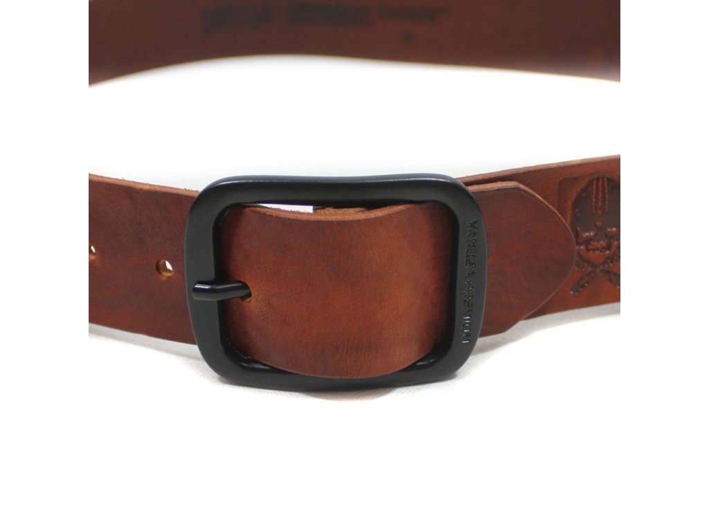 Pásek 3174 v hnědé barvě od Yakuza Premium Selection. Kožený pásek s velkou kovovou přezkou má 4 možnosti nastavení délky.