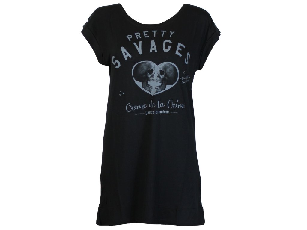 Dámské mini šaty Yakuza Premium Selection 3731 v černé barvě z kolekce podzim/zima 2024. Tyto šaty má na přední straně potisk srdce s lebkou a střih pod zadek. Měkká bavlněná směs pro skvělé pohodlí.