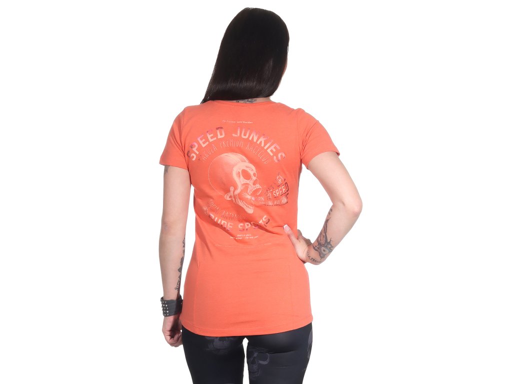 Dámské triko Yakuza Premium 3330 v oranžové barvě s potiskem na zadní straně.