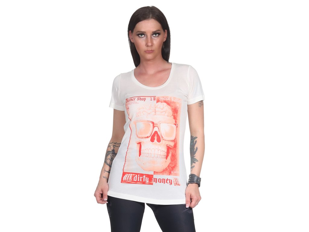 Dámské tričko Yakuza Premium 3332 v bíle barvě s červeno-oranžovým potiskem.