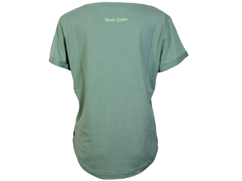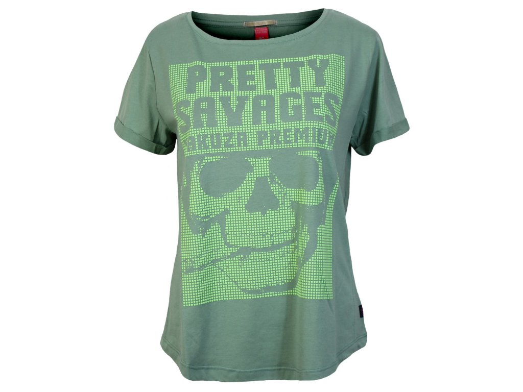 Dámské tričko Yakuza Premium Selection 3431 v mint zelené barvě. Triko má na přední straně velký potisk, který ukazuje promo lebku Yakuza Premium. Na zadní straně je velmi malý nápis v oblasti krku. Zvláštností tohoto topu je technologie tečkovaného 3D tisku. Má široký kulatý výstřih a volnějších střih. V případě pochyb objednejte o číslo větší. Označení velikosti topu na příkladu velikosti S: oblast podpaží cca 40 cm a střední délka zad cca 67 cm, měřeno vleže.