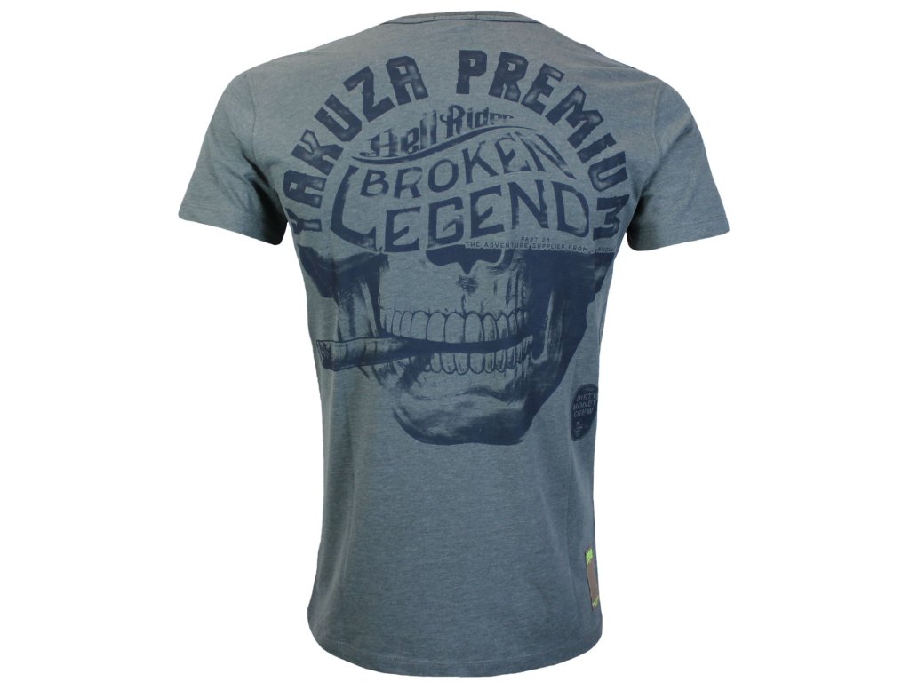 Pánské tričko Yakuza Premium Selection 3511 v modro-šedé barvě z kolekce podzim/zima 2023. Toto tričko má na přední straně velký barevný potisk a na zadní straně je klasická kouřící lebka Yakuza Premium. Měkká bavlněná směs pro skvělé pohodlí. Vzhledem k přiléhavému střihu je triko o něco těsnější. V případě pochyb objednejte o číslo větší. Velikost na příkladu XL pas / hrudník a záda cca 52 / 53 a 72 cm měřeno vleže.