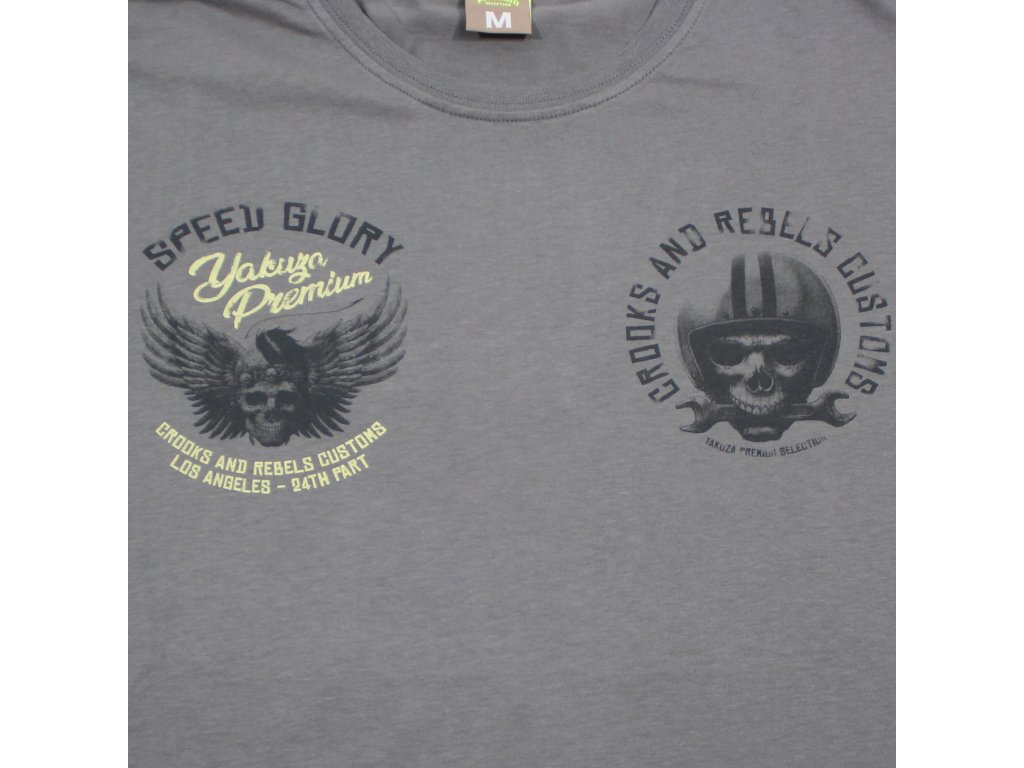 Pánské tričko Yakuza Premium Selection 3600 v šedé barvě z kolekce jaro/léto 2024. Toto tričko má dva menší potisky na hrudníku a velkou lebku v helmě přes celé záda. Měkká bavlněná směs pro skvělé pohodlí. Vzhledem k přiléhavému střihu je triko o něco těsnější. V případě pochyb objednejte o číslo větší. Velikost na příkladu XL pas / hrudník a záda cca 52 / 53 a 72 cm měřeno vleže.