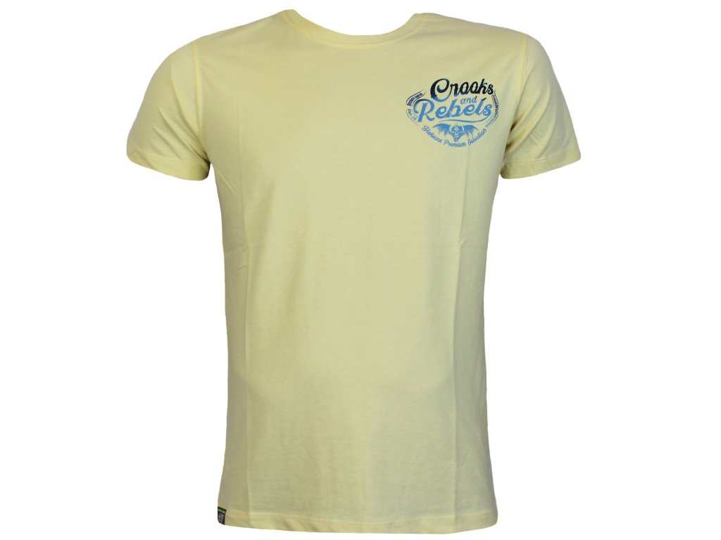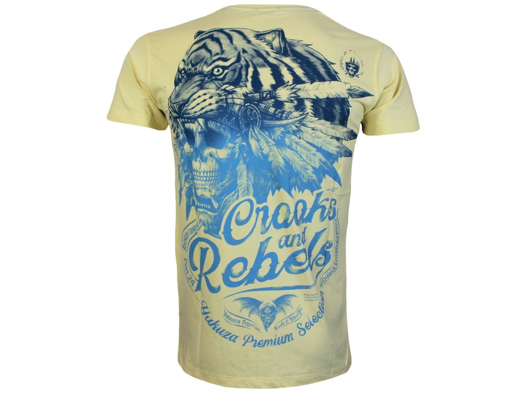 Pánské tričko Yakuza Premium Selection 3603 ve světle žluté barvě z kolekce jaro/léto 2024. Toto triko má potisk indiánské lebky přes celou zadní stranu. Měkká bavlněná směs pro skvělé pohodlí. Vzhledem k přiléhavému střihu je triko o něco těsnější. V případě pochyb objednejte o číslo větší. Velikost na příkladu XL pas / hrudník a záda cca 52 / 53 a 72 cm měřeno vleže.