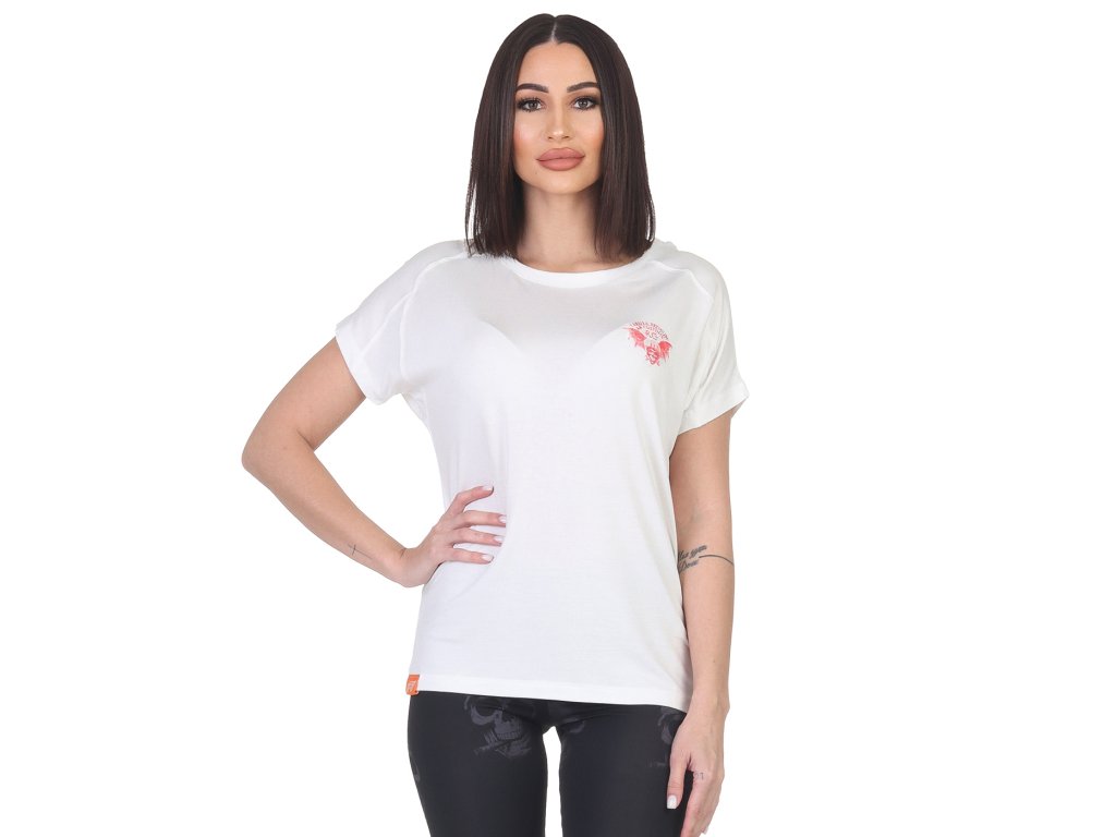 Dámské tričko Yakuza Premium Selection 3635 v bílé barvě z kolekce jaro/léto 2024. Toto tričko má na zadní straně potisk lebky s křídly. Měkká bavlněná směs pro skvělé pohodlí.