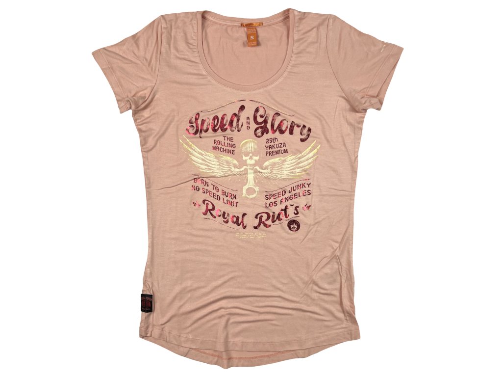 Dámské tričko Yakuza Premium Selection 3732 v oranžové barvě z kolekce podzim/zima 2024. Toto tričko má na přední straně potisk lebky s křídly. Měkká bavlněná směs pro skvělé pohodlí.