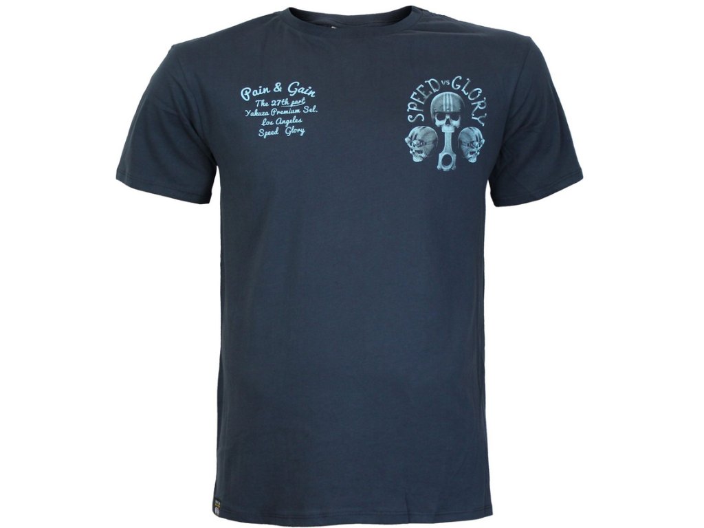 Pánské tričko Yakuza Premium Selection 3906 v tmavě modré barvě z kolekce podzim/zima 2025. Toto triko má potisk na přední i zadní straně. Měkká bavlněná směs pro skvělé pohodlí. Vzhledem k přiléhavému střihu je triko o něco těsnější. V případě pochyb objednejte o číslo větší. Velikost na příkladu XL pas / hrudník a záda cca 52 / 53 a 72 cm měřeno vleže.