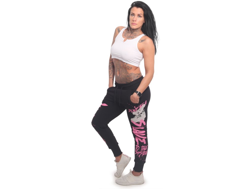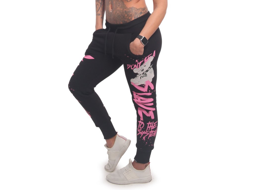 Dámské tepláky Yakuza Teddy Urban 23118 v černé barvě. Tepláky mají potisk na obou nohavicích, šňůrku v pase a zúžený lem kolem kotníku.