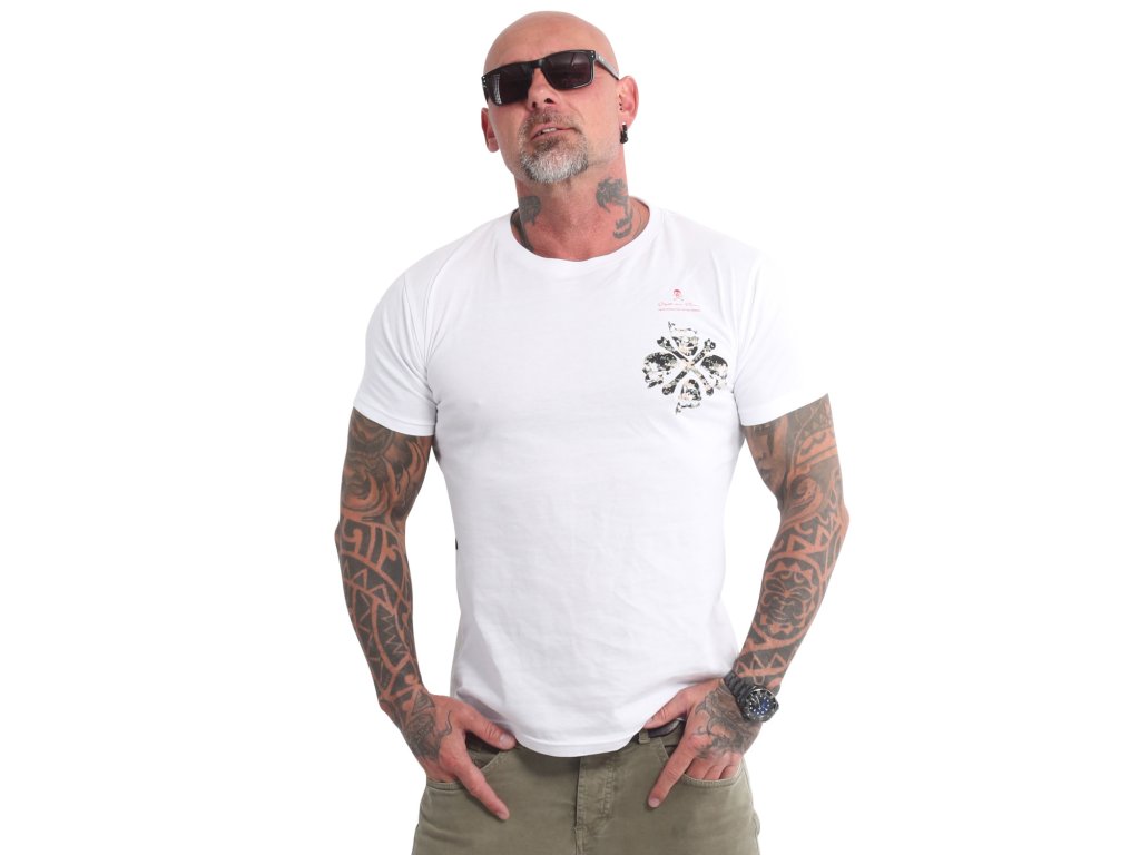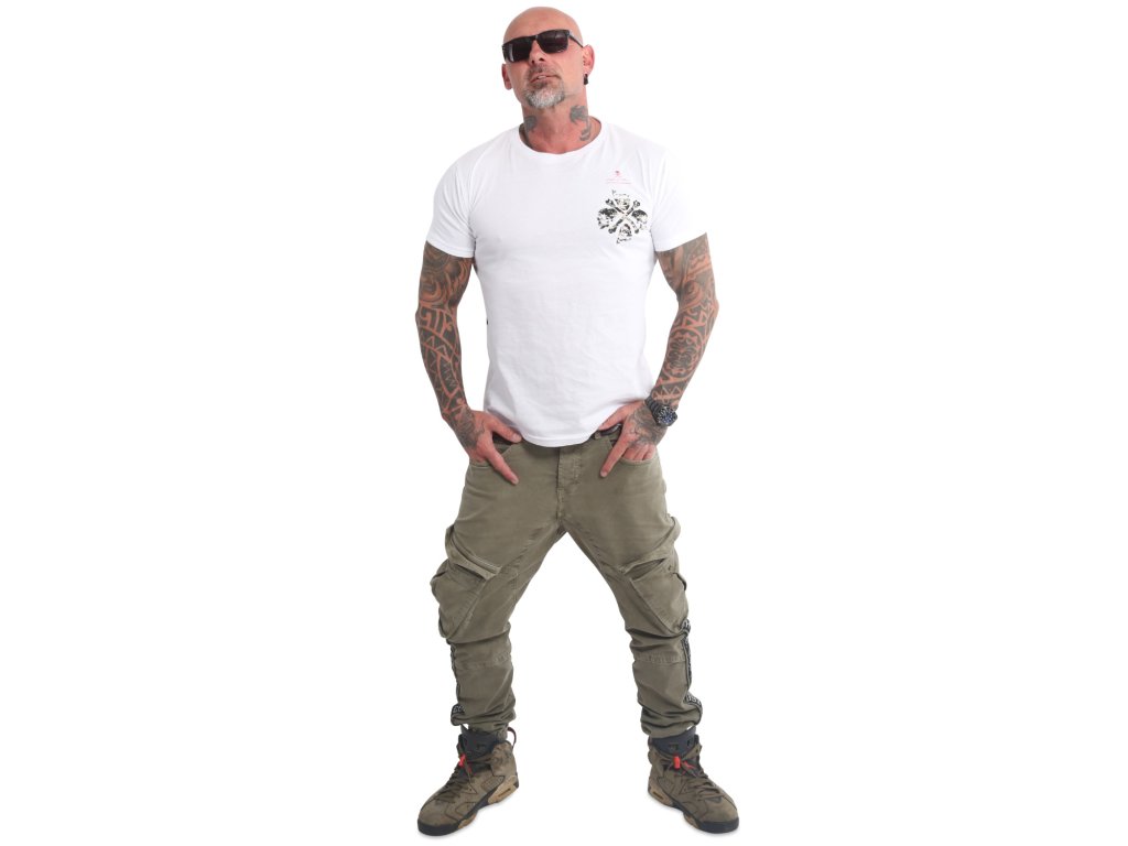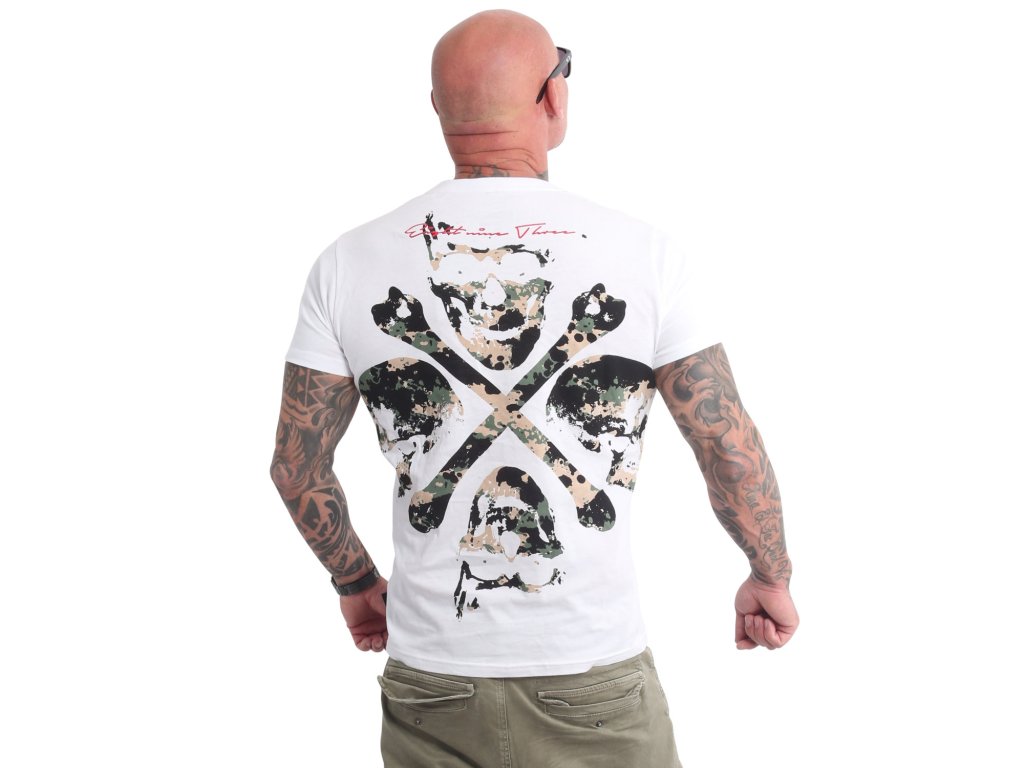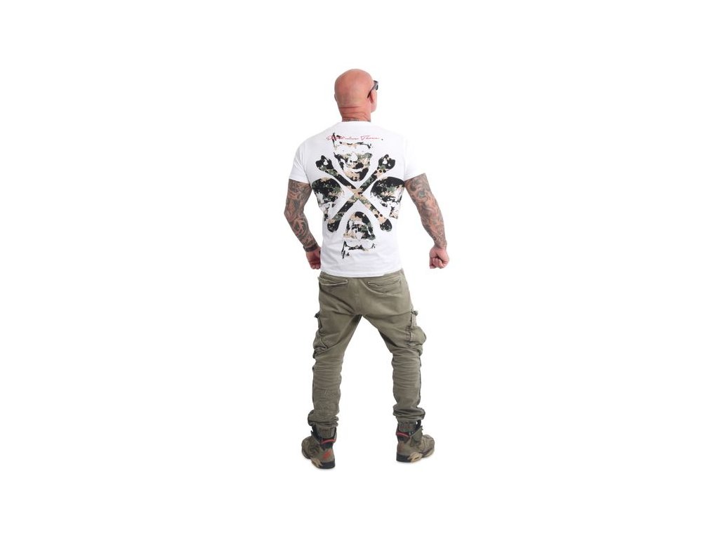 Pánské triko s krátkým rukávem Yakuza Cruel V02 22083. Bílé triko s kulatým výstřihem a oboustranným potiskem, samozřejmostí je štítek s logem Yakuza na bočním švu.