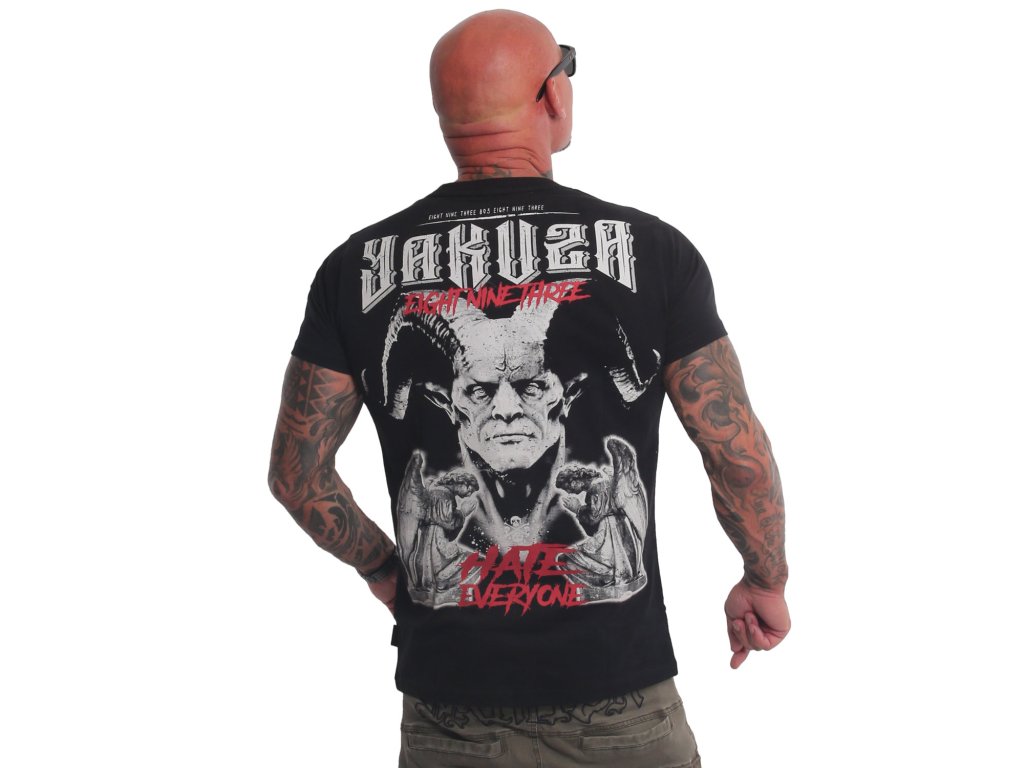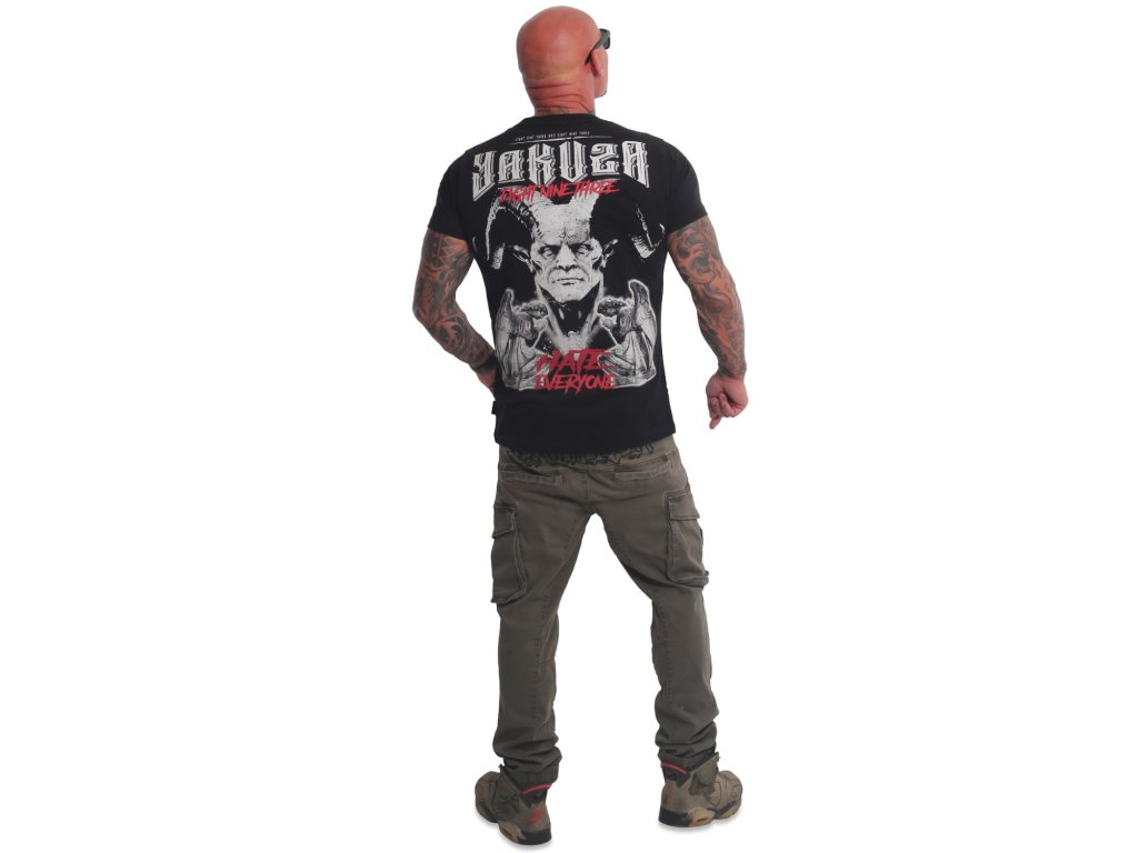 Pánské triko s krátkým rukávem Yakuza Hate 23034. Černé triko s kulatým výstřihem a oboustranným potiskem, samozřejmostí je štítek s logem Yakuza na bočním švu.