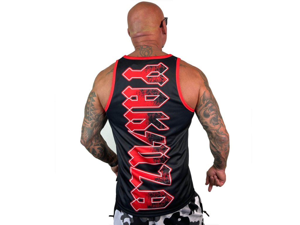 Pánské tílko Yakuza Rockstarz Mesh 24066 slim fit navržené tak, aby kopírovalo tvar těla. Tílko s potiskem na zadní straně z prodyšné síťoviny, samozřejmě štítek s logem Yakuza na bočním švu.