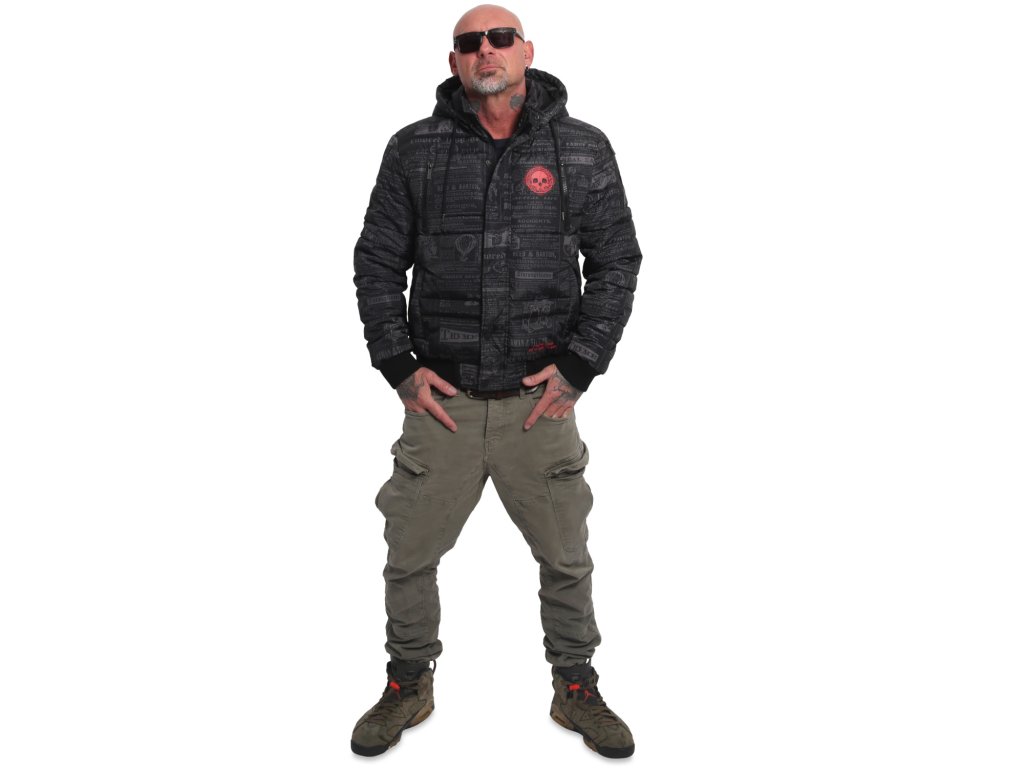 Pánská zimní bunda Yakuza Newz Force s prošitím a velkým potiskem na zadní straně.